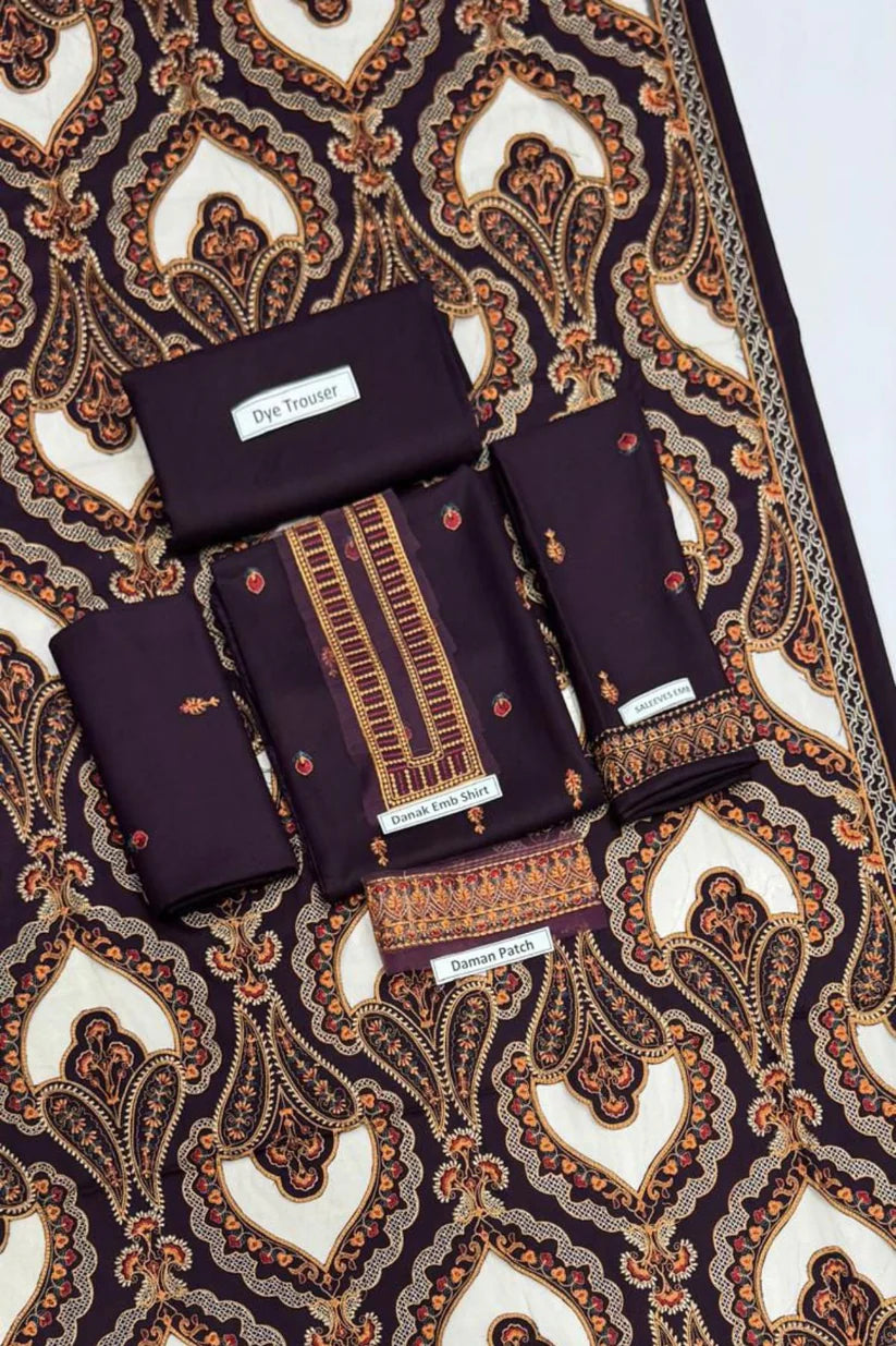 Bareeze 1672 Purple Unstitched Luxury Dhanak Heavy Embroidered 3PC Suit With Laser Cut Shawl